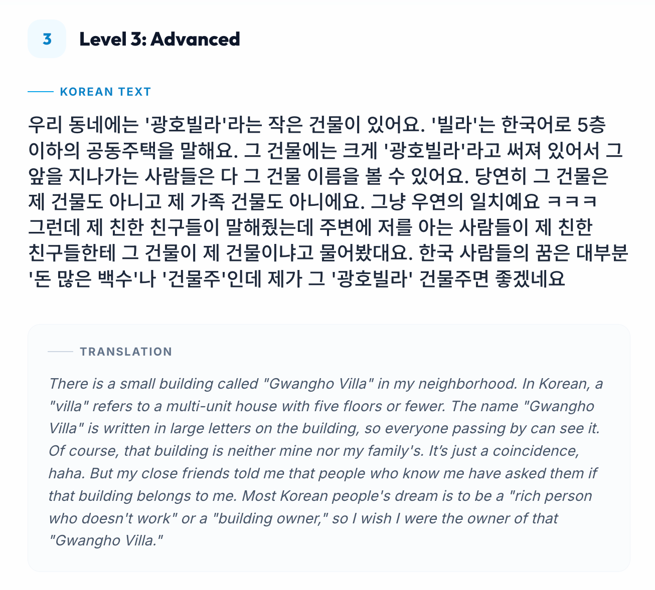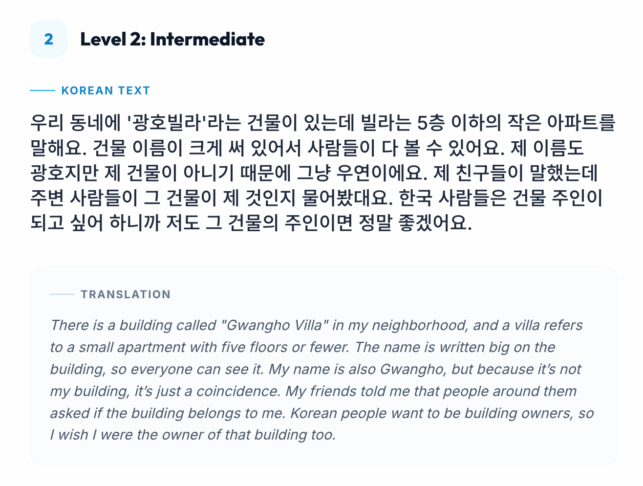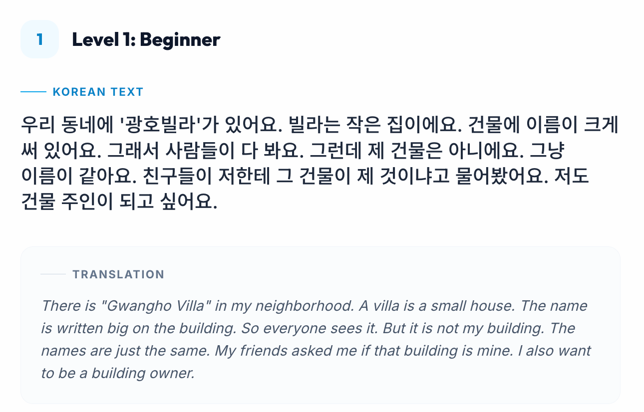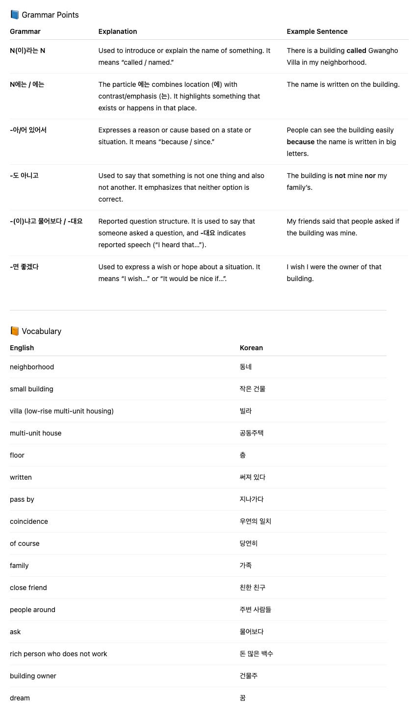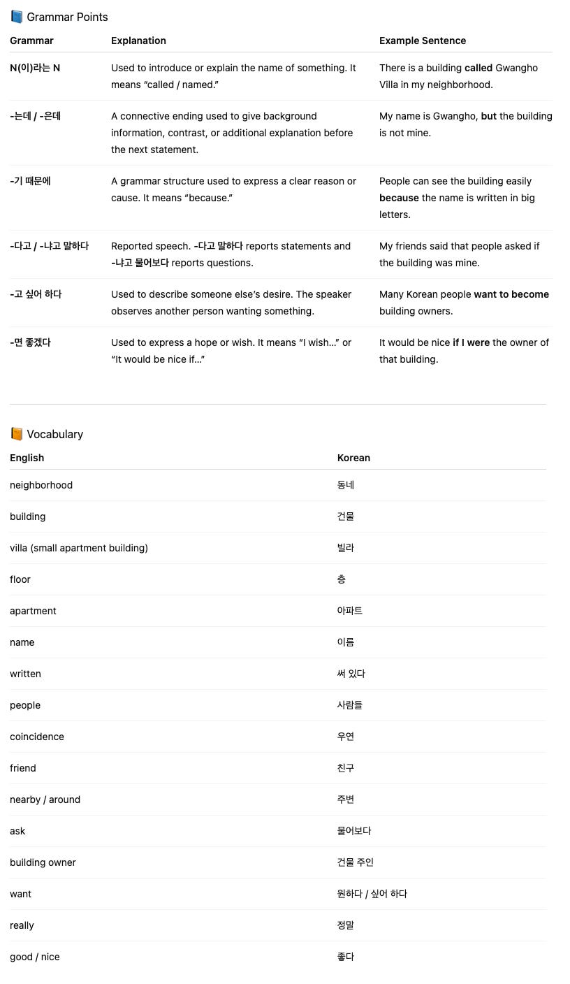 My Small Building 🏢✨Korean Tutor KMar 11, 202642Share0:00-0:18Audio playback is not supported on your browser. Please upgrade.0:00-0:25Audio playback is not supported on your browser. Please upgrade.0:00-0:41Audio playback is not supported on your browser. Please upgrade.
